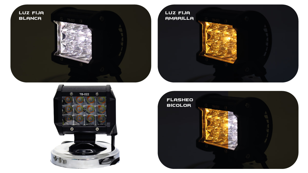 Exploradora cuadrada 12 LED Dual color Foco Profundidad Fijo y flasheo