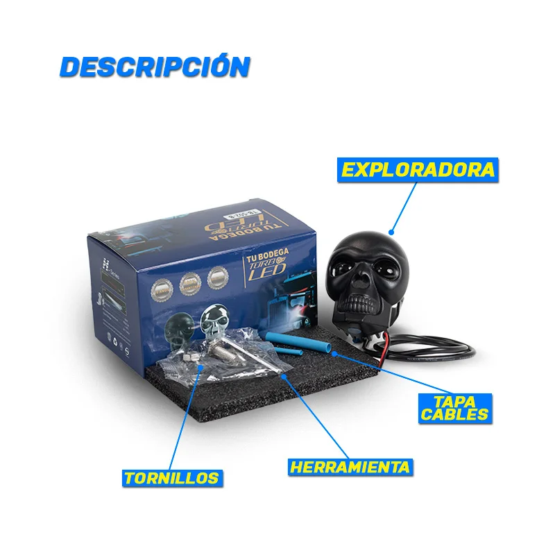 Exploradora led diseño craneo, tipo laser, Luz bicolor