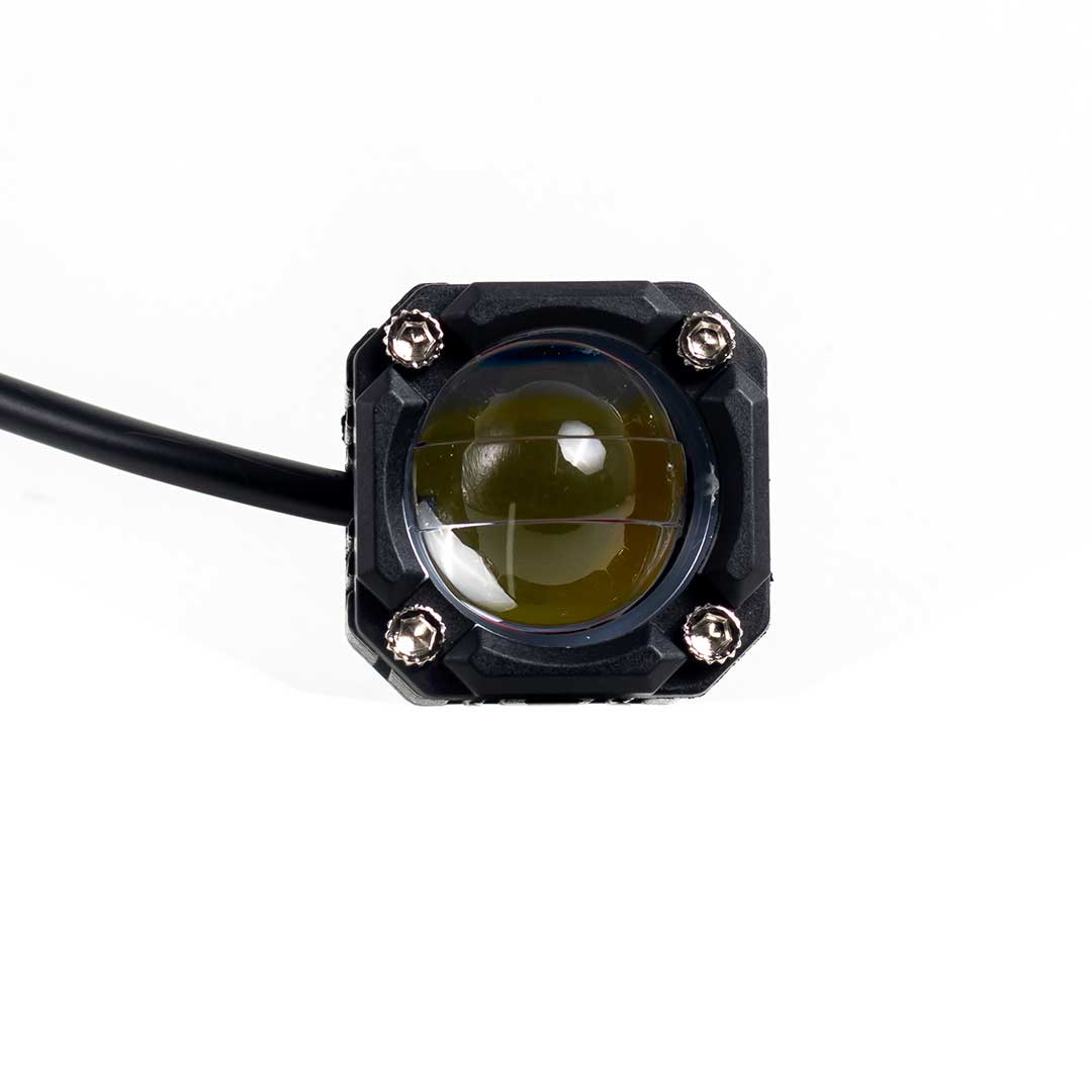 Disfruta de una iluminación adaptable con luz blanca de 6500K para una claridad máxima y luz amarilla de 3500K que penetra eficazmente en niebla, lluvia o polvo. Su diseño con lupa y haz expansivo tipo flood beam proporciona una cobertura amplia y uniforme.💪 Construcción Robusta y Duradera