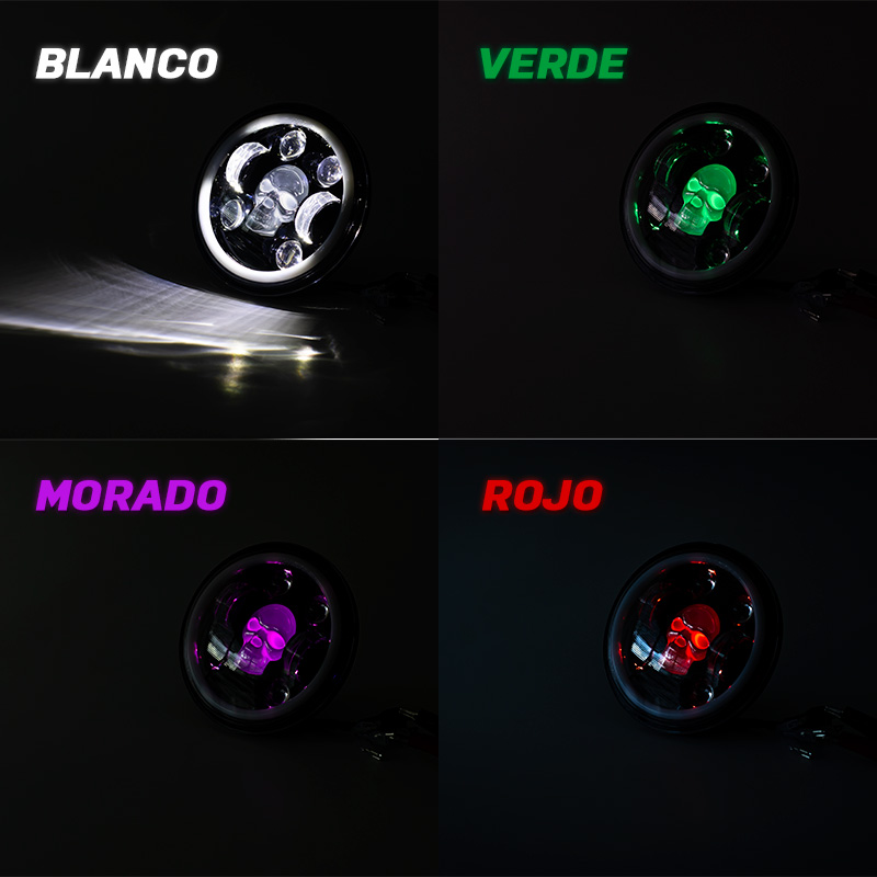 Farola de lujo 5″ RGB modelo calavera, con ojo de de angel (Blanco/amarillo) Función: Altas y bajas