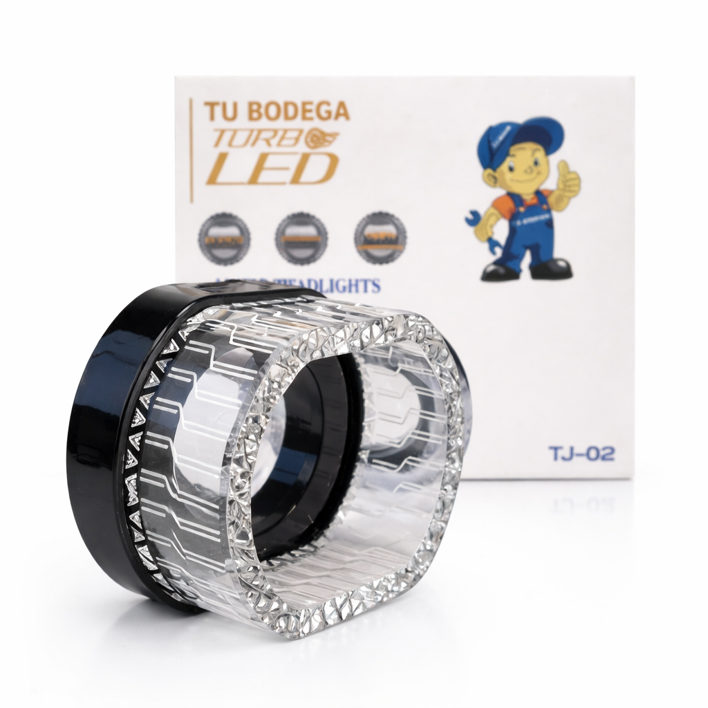 TJ-02 OJO DE ANGEL RGB, APTO PARA MOTO, FUNCIONAMIENTO DESDE APLICATIVO MOVIL.